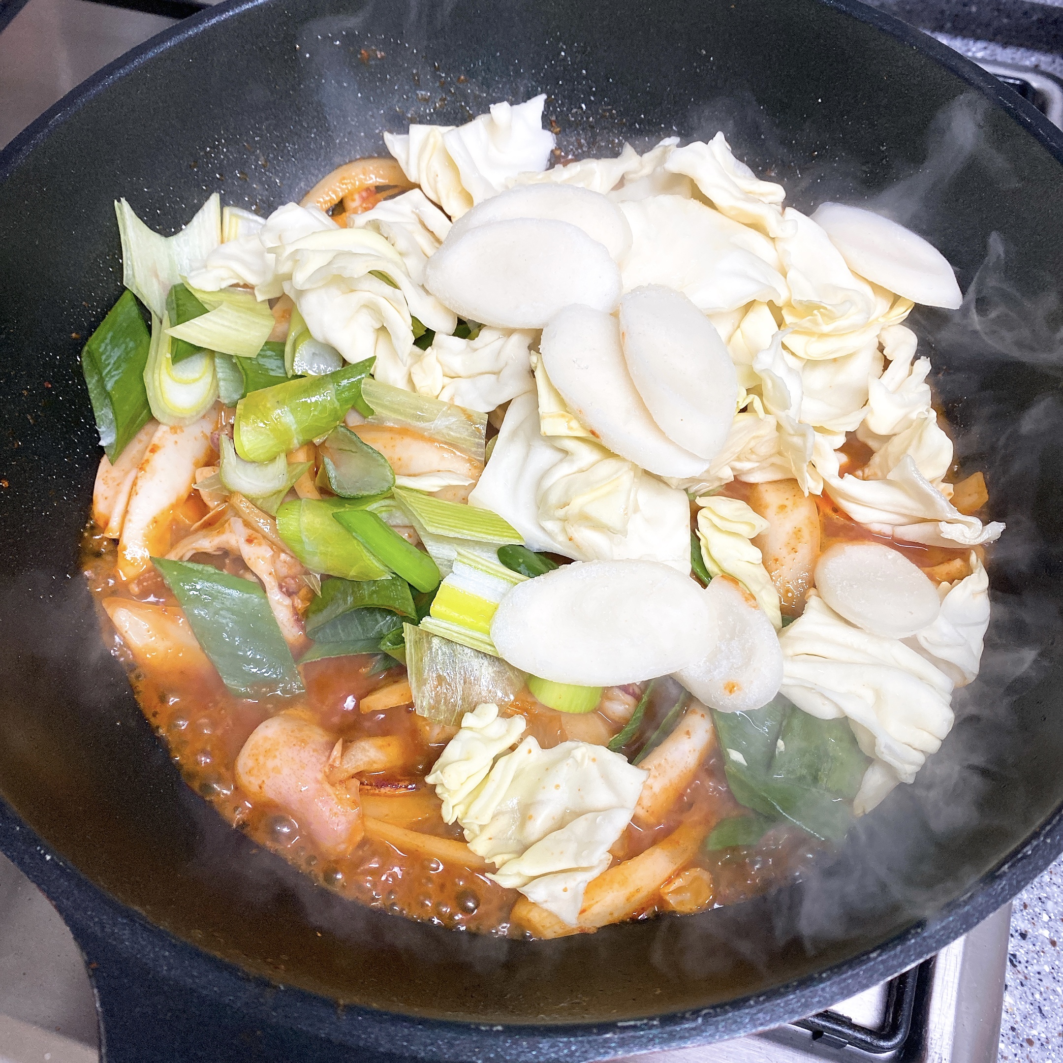 준비해놨던 양배추와 대파를 넣어주고, 새해 먹고 남았던 떡국떡도 좀 넣었어요. ㅎㅎ