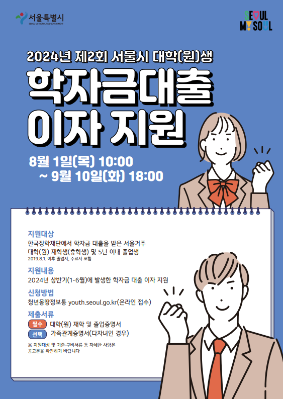 바로 2024년 제2회 서울시 대학(원)생 학자금대출 이자 지원입니다!🎉
