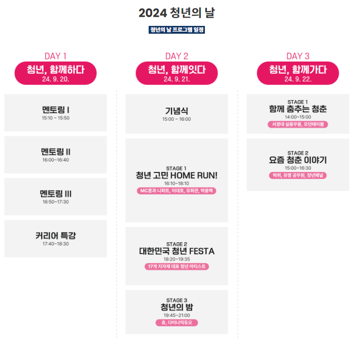 2024 청년의 날 프로그램 일정
