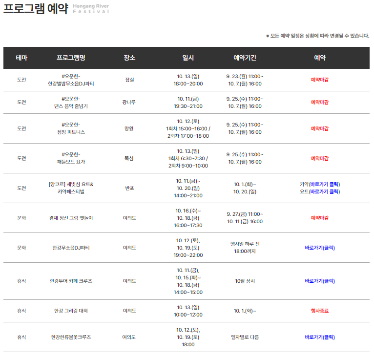 날짜가 지나서 예약 마감된 프로그램들도 있지만,
