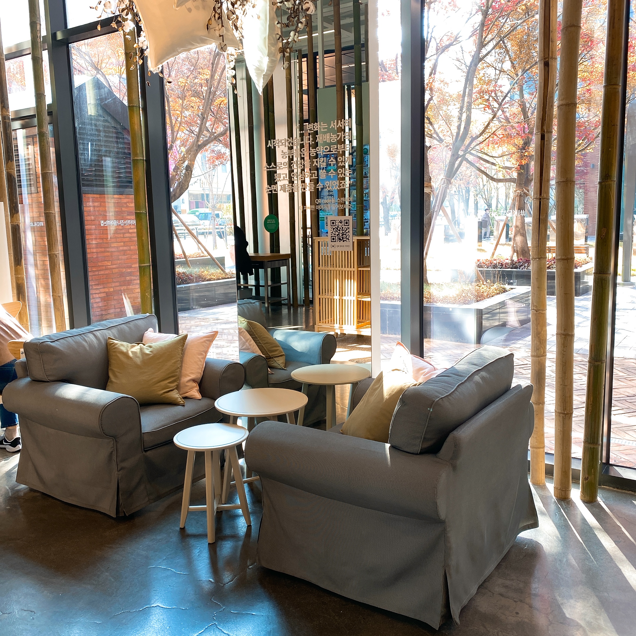 내부는 이케아스럽게 꾸며져 있었는데요, 상품판매를 하기도 하고 좌석도 2인, 긴 테이블, 소파석 등 다양하게 있었어요.