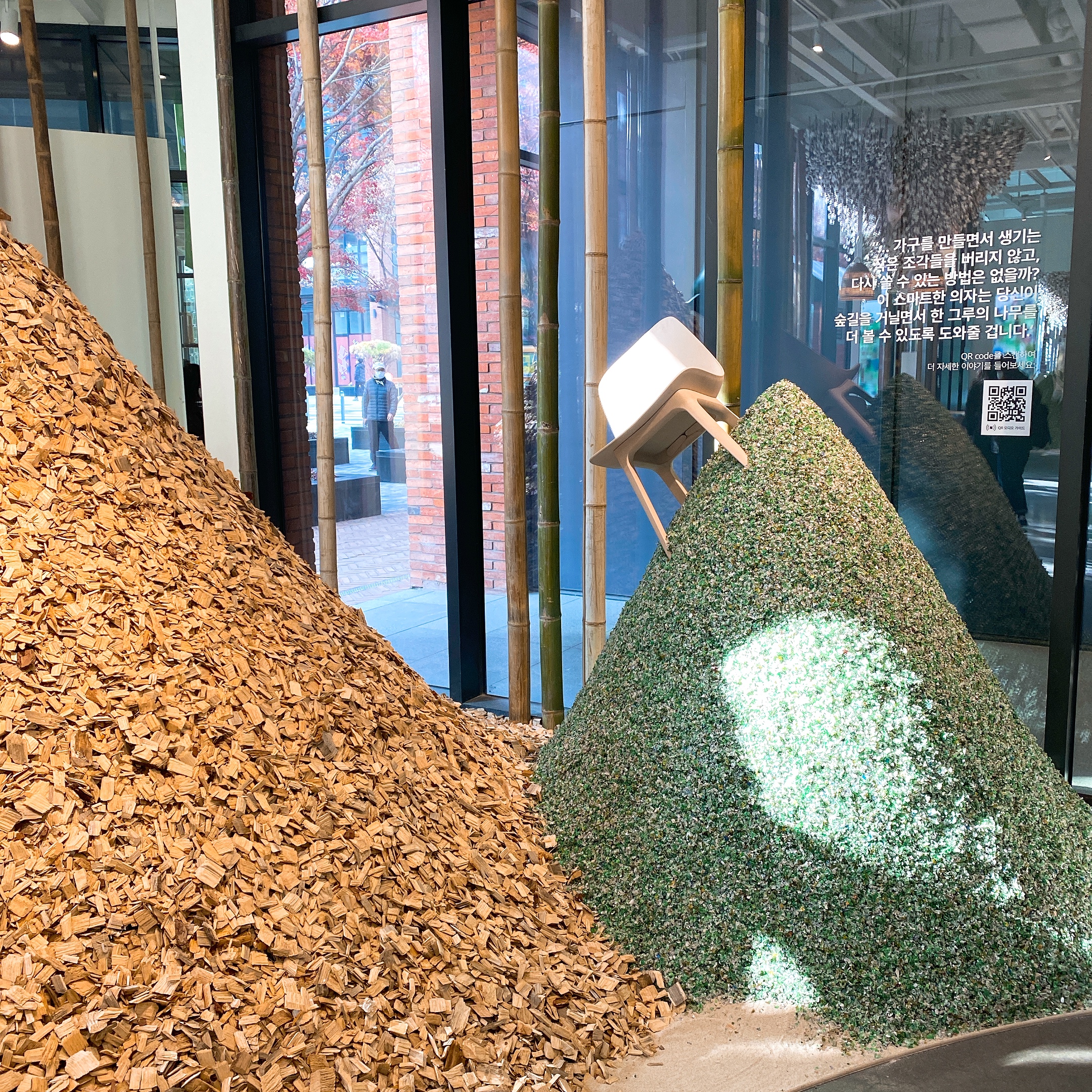 가구를 만들고 생기는 조각들, 대나무, 순면, 플라스틱까지 생각지도 못한 물건들이 가구로 재탄생된다는건 너무 신기한 것 같아요.